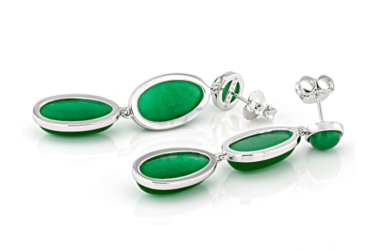 • Pacific Style™ Green Jadeite Rhodium Over Sterling Silver Earrings