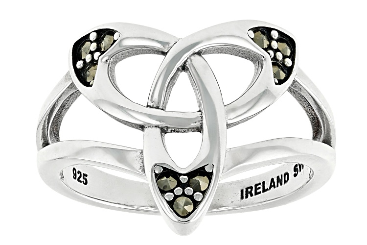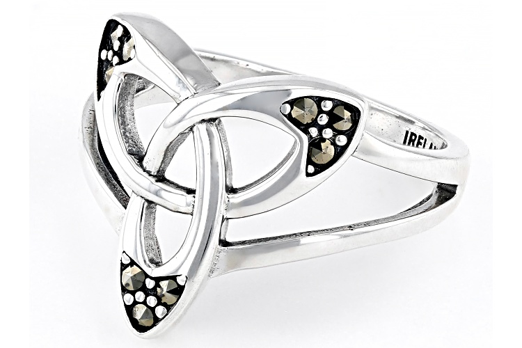 Artisan Collection of Ireland™ 2mm Round Marcasite Sterling Silver Trinity Knot Ring. Measures Approximately 0.66"L x 0.65"W. Not Sizeable.