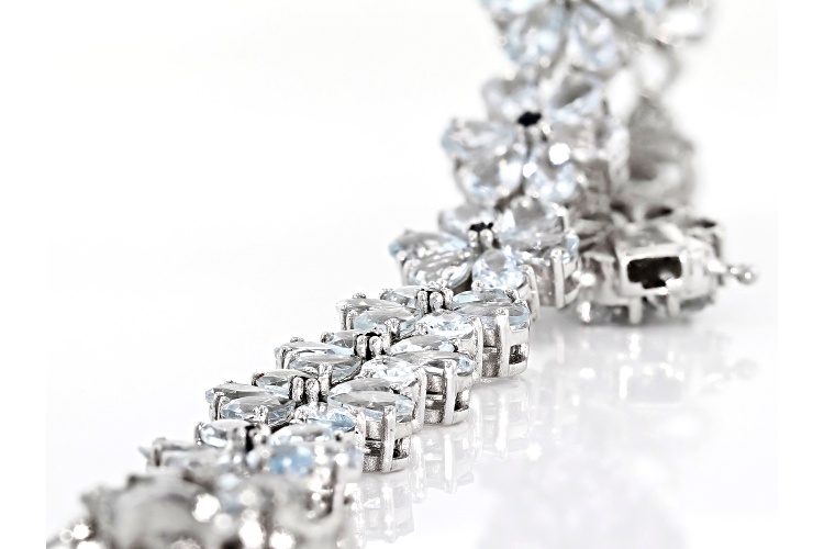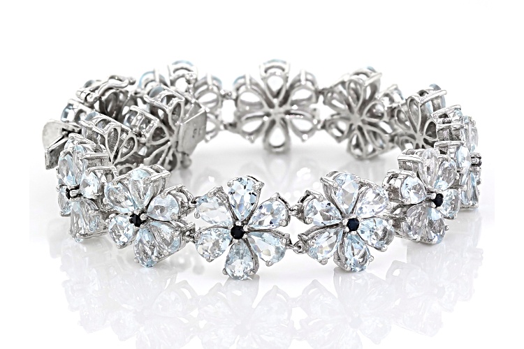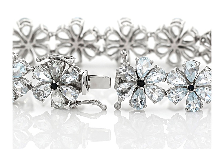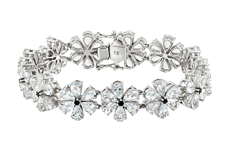 26.52CTW AQUAMARINE WITH .65CTW BLUE SAPPHIRE RHODIUM OVER SILVER FLORAL BRACELET - Size 7.25