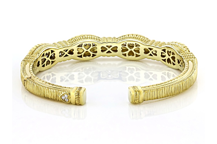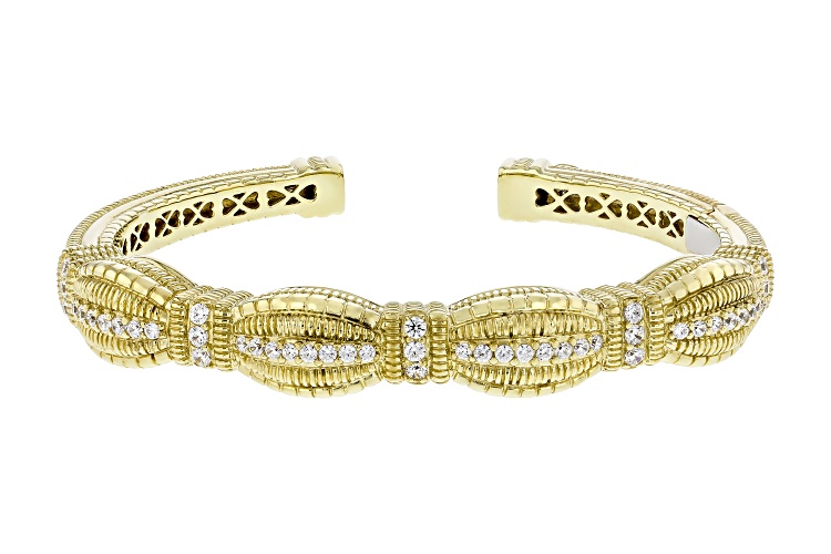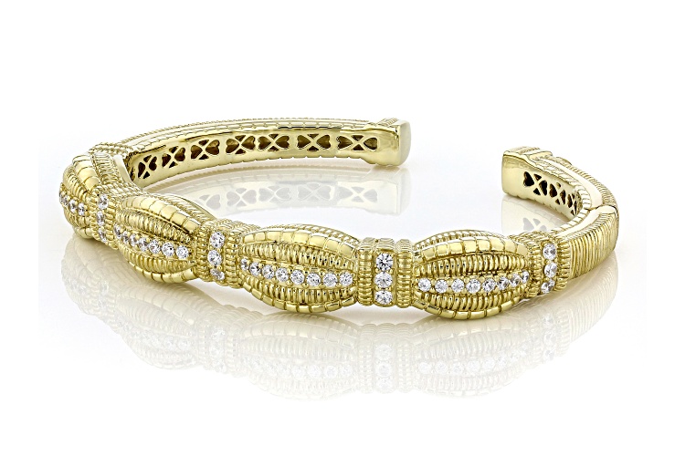Judith Ripka 1.60ctw Bella Luce® Diamond Simulant 14k Gold Clad Loopty Loo Swag Cuff Bracelet. Measures approximately 0.37"W. Hinged closure. Finished under gallery.