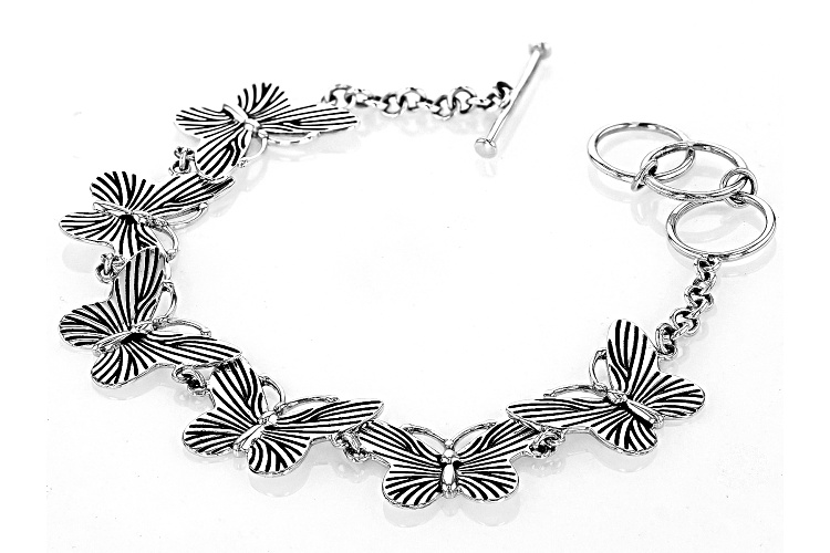 Southwest Style by JTV™ Oxidized Sterling Silver Butterfly Bracelet. Measures approximately 0.64"W. Toggle clasp that extends up to 1.00".