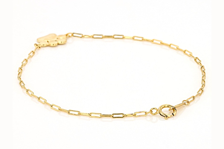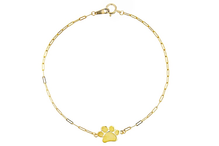 10k Yellow Gold Paw Print Charm Paperclip Link Bracelet - Size 7.25