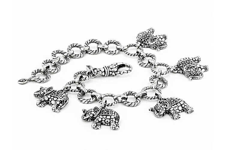 Artisan Collection Of Bali™ Sterling silver "Kindness Leads" elephant charm bracelet. Measures approximately 1.13"W. Lobster clasp. 1.75" extender. Oxidized finish.