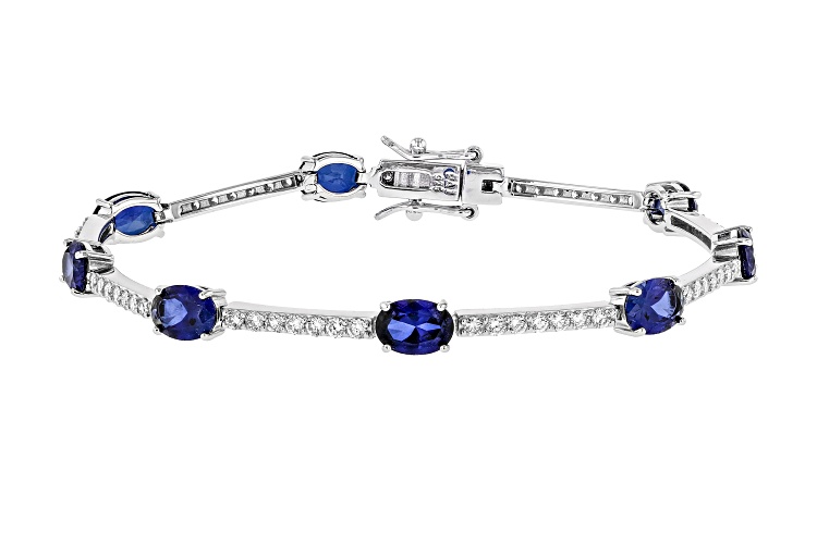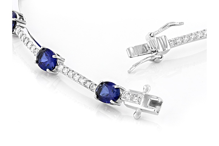 Prazana® Lab-Grown Diamonds 7.42ctw 7x5mm oval blue lab created sapphire with 1.50ctw round white lab-grown diamond, rhodium over sterling silver tennis bracelet. Measures approximately 3/16"W and has a hidden box clasp closure. Lab-grown diamonds are G-H color, SI clarity minimum.