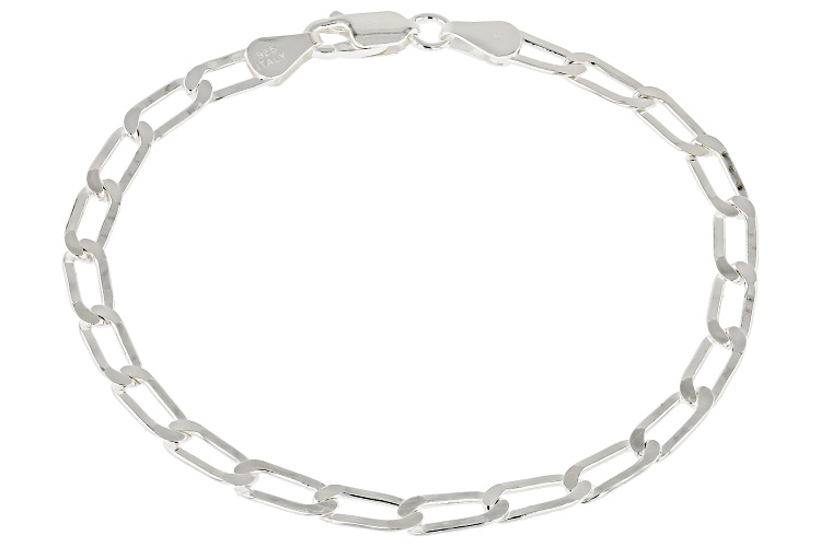 Sterling Silver 4.5mm Flat Curb Link Bracelet with a lobster claw clasp.
