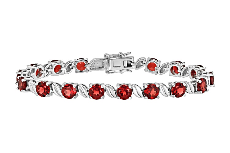 16.36ctw Round Vermehlo Garnet™ Rhodium Over Sterling Silver Tennis Bracelet - Size 8
