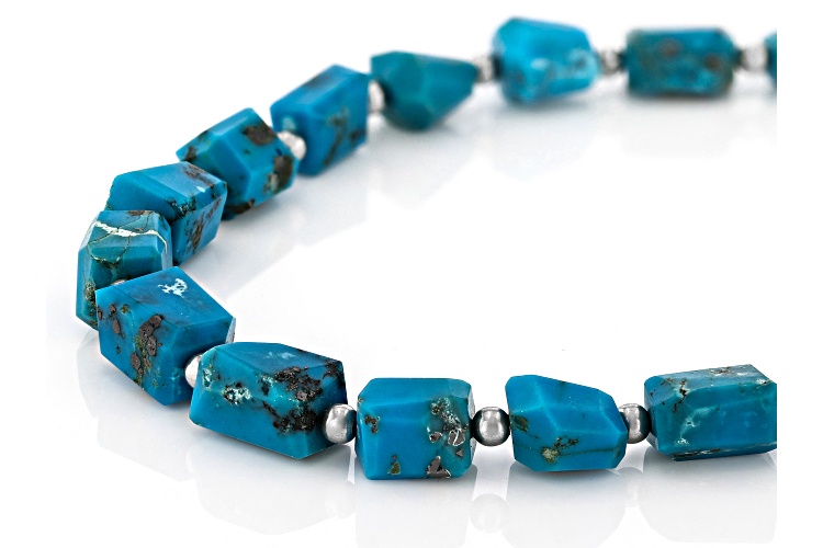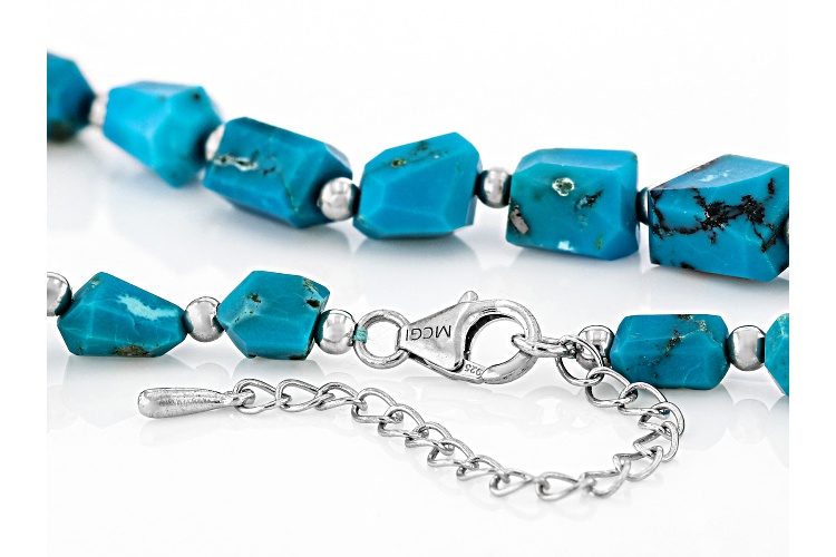 Southwest Style by JTV™ 5x7-8x11mm Nugget Beaded Kingman Turquoise Sterling Silver Necklace. Measures Approximately 18.0"L x 0.30"W. Lobster Claw Closure with 2.0" Extender.