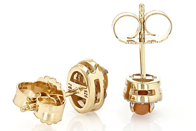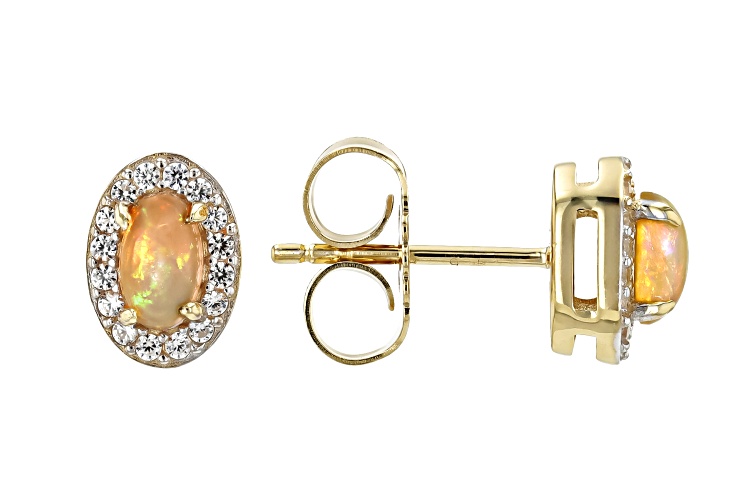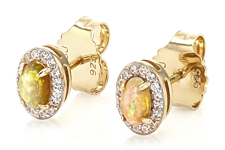 5x3mm Ethiopian Opal, 0.20ctw Zircon 18k Yellow Gold Over Sterling Silver Earrings