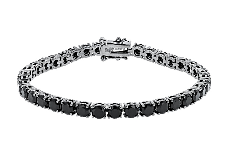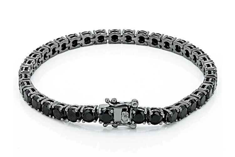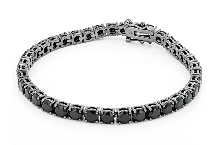 • 12.43ctw Round Black Spinel, Black Rhodium Over Sterling Silver Tennis Bracelet - Size 8