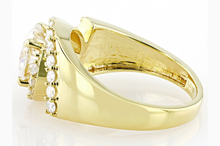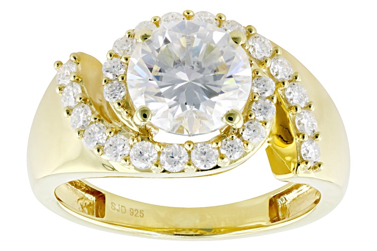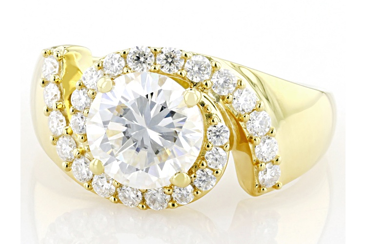 MOISSANITE FIRE® 2.54CTW DEW ROUND BRILLIANT 14K YELLOW GOLD OVER SILVER RING - Size 7