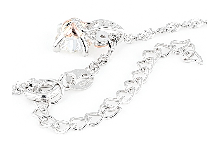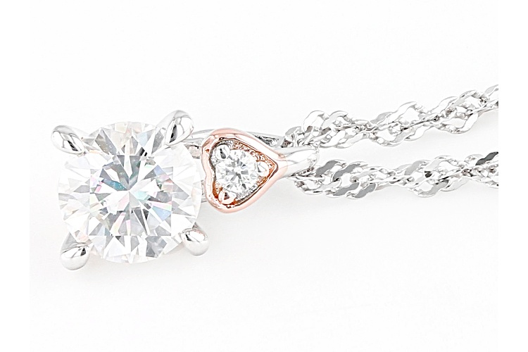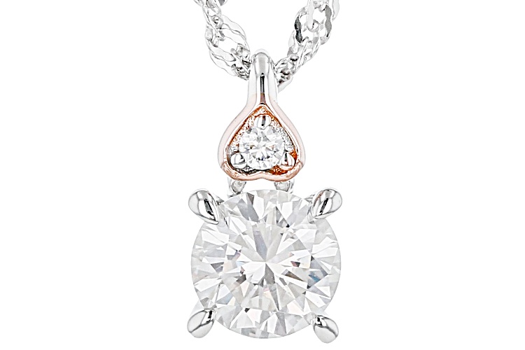 MOISSANITE FIRE(R) .83CTW DEW PLATINEVE(R) & 14K ROSE GOLD OVER SILVER PENDANT & SINGAPORE CHAIN
