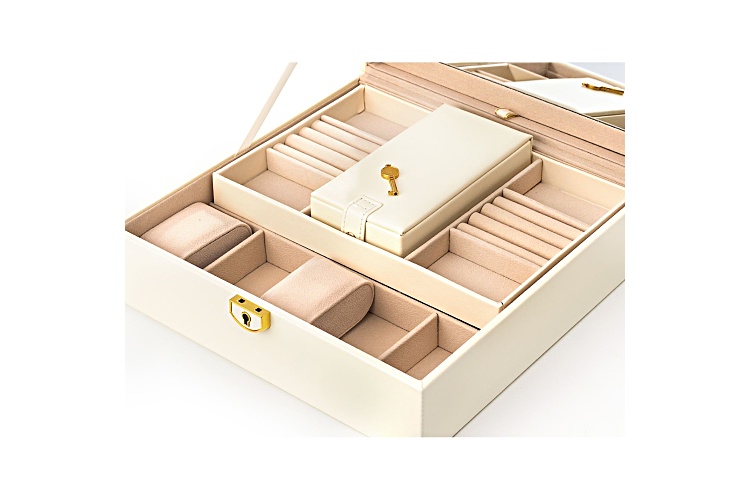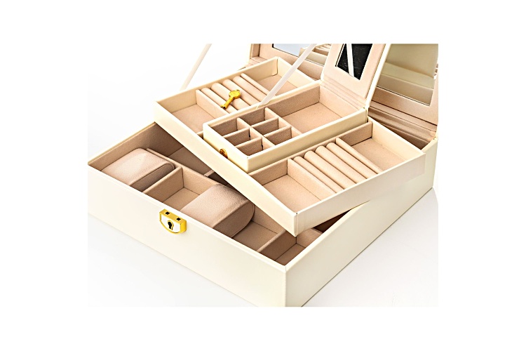 Lockable White Jewelry Box with Mirror and Inner Removable Storage Box