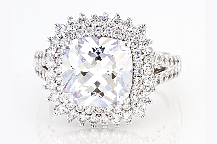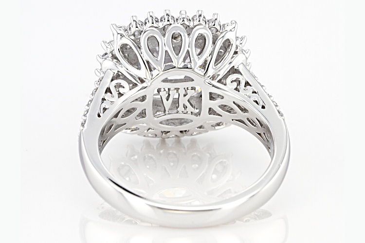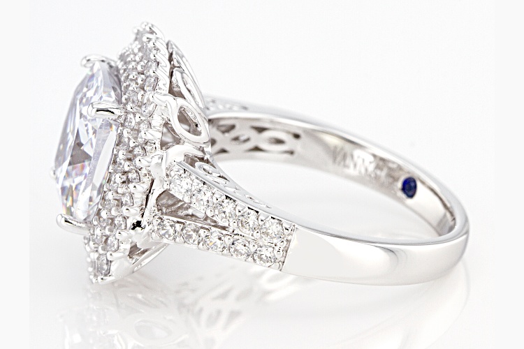 Vanna K™ For Bella Luce ® 8.36ctw White Diamond Simulant Platineve ® Ring. Measures Approximately 0.83'Lx0.65"W. Finished Undergallery. Each Vanna K(TM) design has a signature label that features a lab created sapphire. (The diamond equivalent weight of this piece is approximately .90ctw).