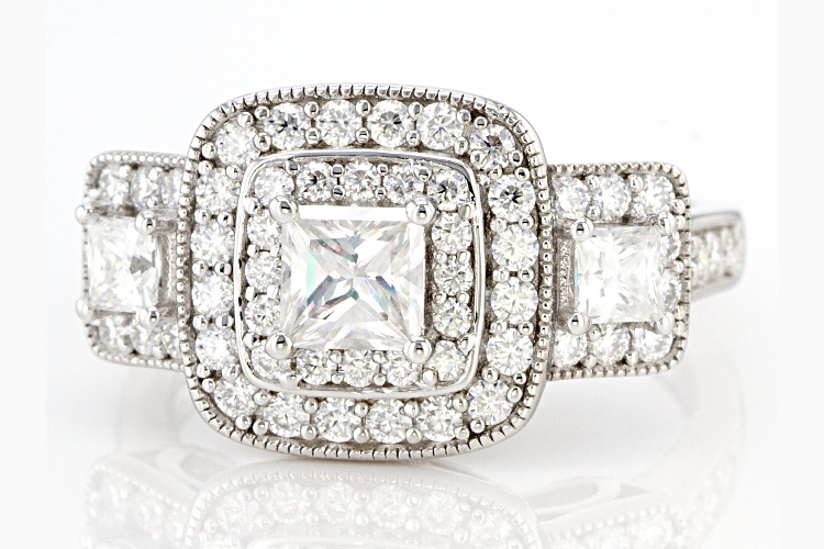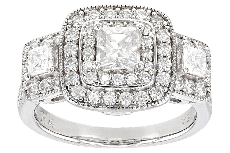 MOISSANITE FIRE(R) 1.96CTW DEW PRINCESS CUT & ROUND PLATINEVE(R) RING - Size 9