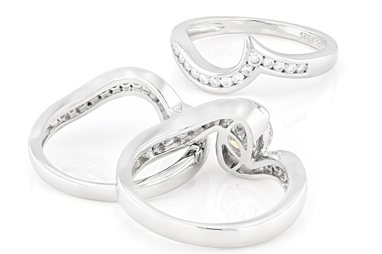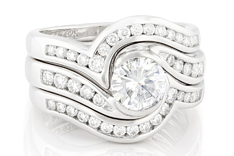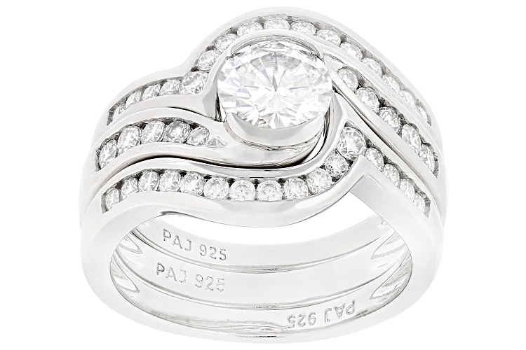 MOISSANITE FIRE® 1.94CTW DEW ROUND BRILLIANT PLATINEVE® RING WITH TWO BANDS - Size 9