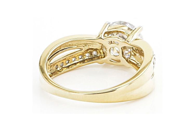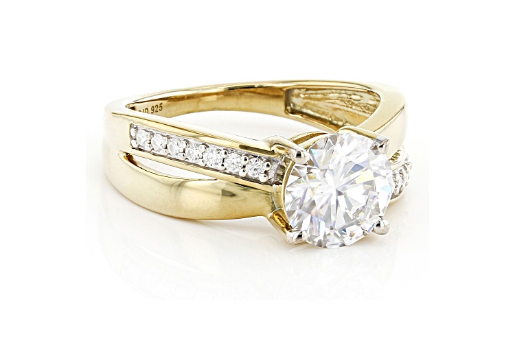 MOISSANITE FIRE(R) 2.04CTW DEW ROUND 14K YELLOW GOLD OVER SILVER RING - Size 8