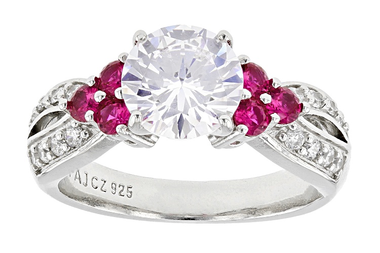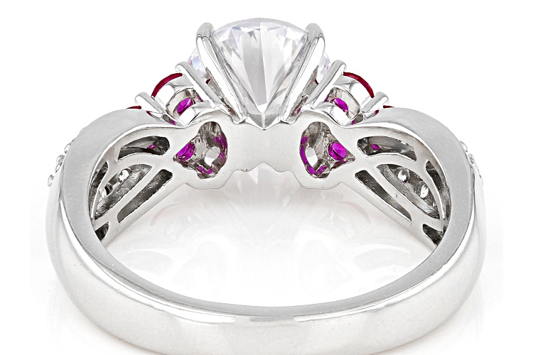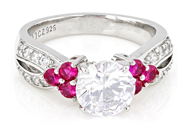 Bella Luce® lab created ruby and white diamond simulants 3.78ctw round, platinum over sterling silver ring. Measures approximately 0.81" L x 0.31" W and is not sizable.