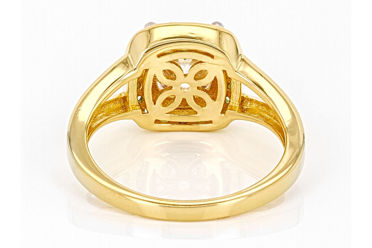 MOISSANITE FIRE® 2.00CT DEW CUSHION CUT & ROUND TSAVORITE 14K YELLOW GOLD OVER SILVER RING - Size 7