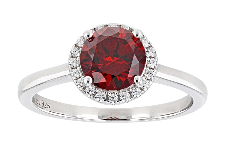 Bella Luce® garnet and white diamond simulants 2.25ctw round, rhodium over sterling silver ring. Measures approximately 0.75" L x 0.31" W and is not sizeable.