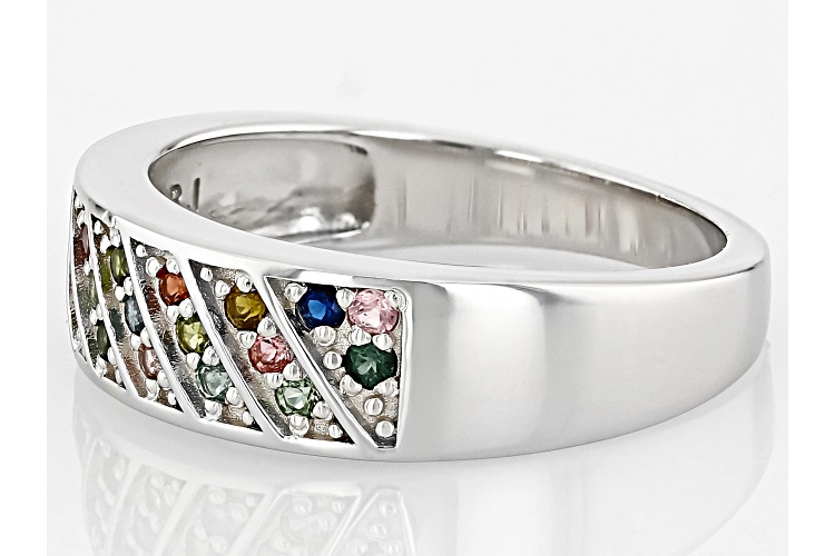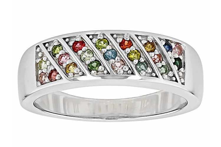 • 0.50ctw Round Multi-Tourmaline Rhodium Over Sterling Silver Band Ring - Size 7