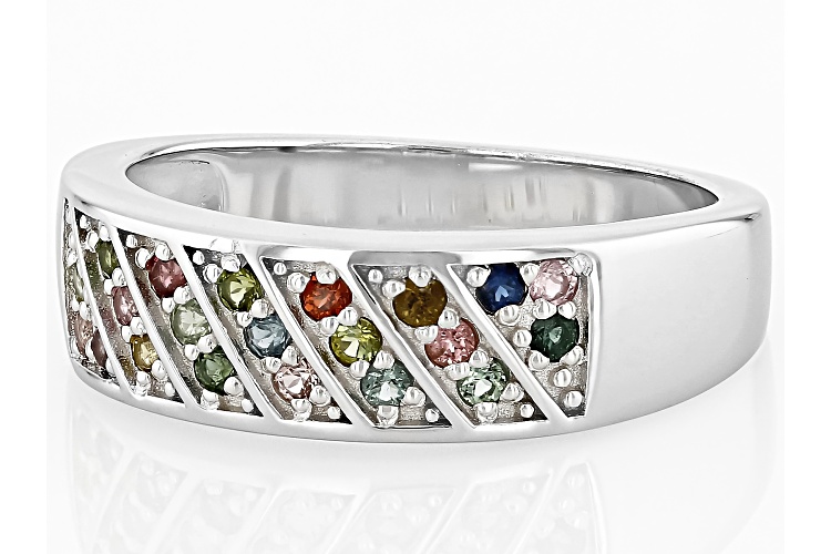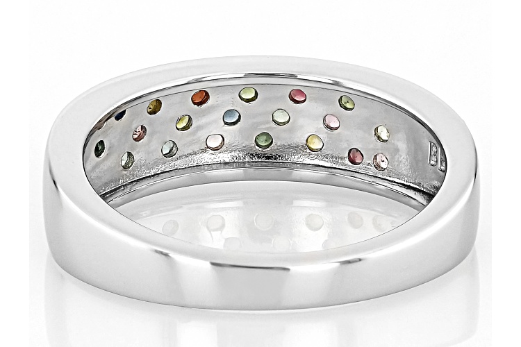 0.50ctw Round Multi-Tourmaline Rhodium Over Sterling Silver Band Ring. Measures Approximately 0.87"L x 0.25"W. Not sizeable.