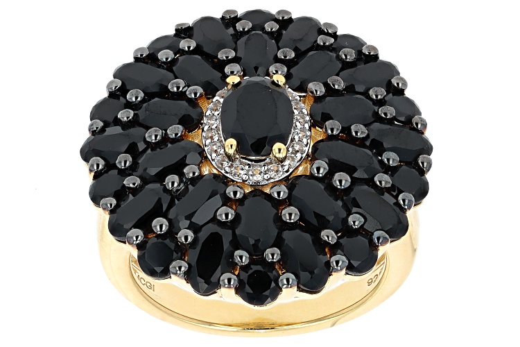 • 6.80ctw Black Spinel With 0.14ctw White Zircon 18k Yellow Gold Over Sterling Silver Ring - Size 7