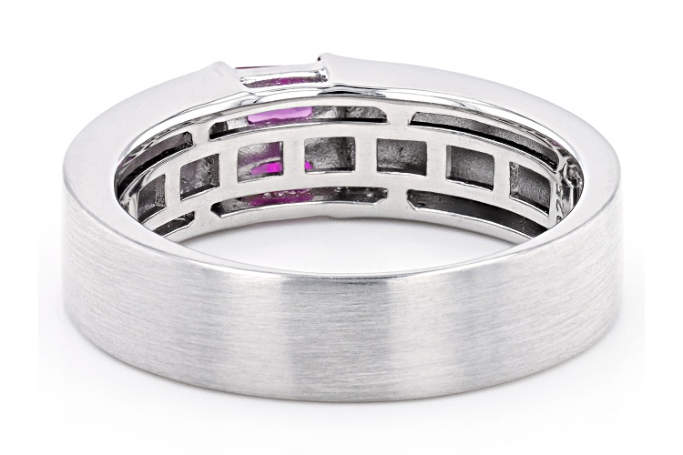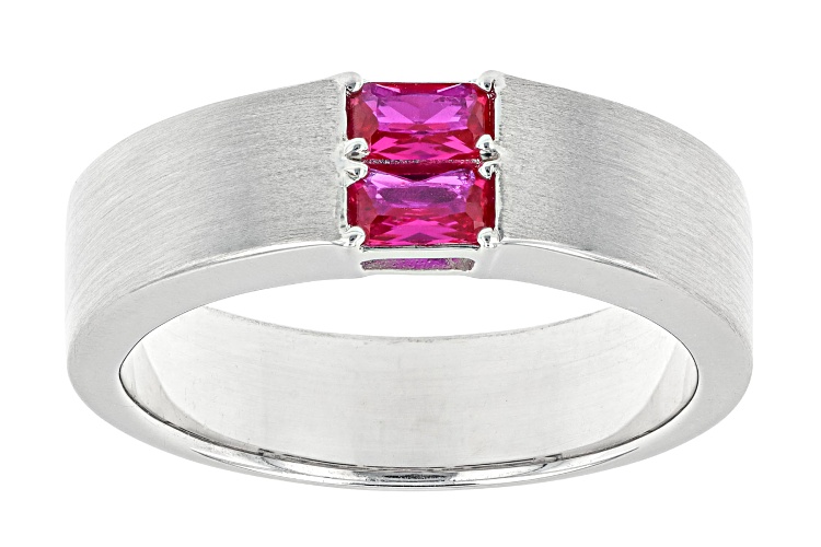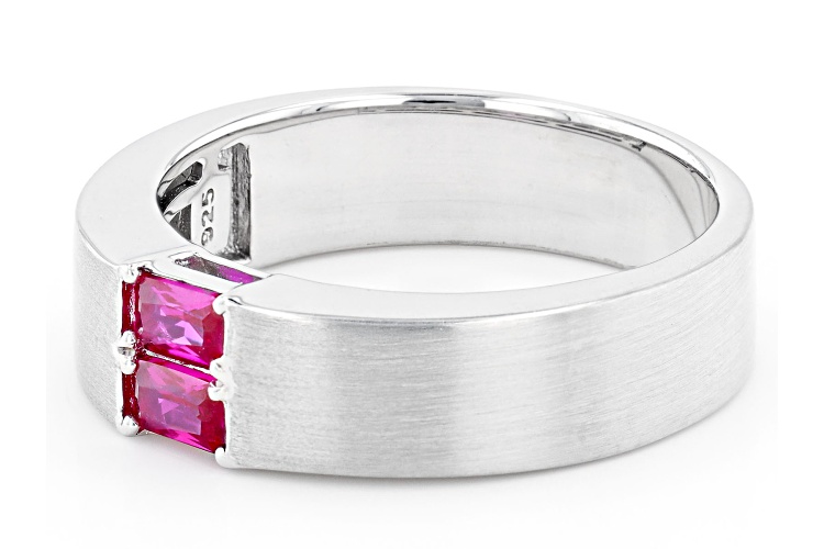 0.65ctw Rectangular Octagonal Lab Created Ruby Rhodium Over Sterling Silver Matte Finish Men's July Birthstone Band Ring. Measures Approximately 0.27"L x 0.27"W. Not sizeable. Finished Under Gallery.
