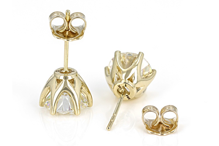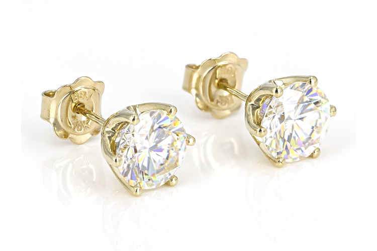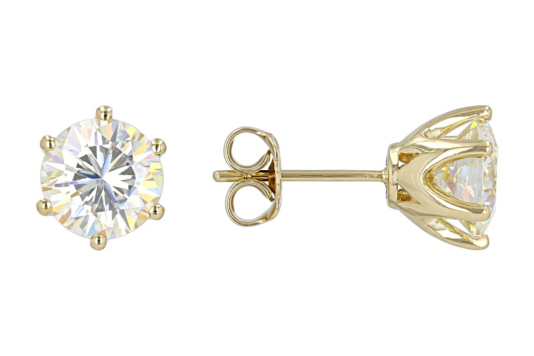 4.84ctw Round White Lab Created Strontium Titanate 10k Yellow Gold Earrings. Measures Approximately 0.32"L x 0.32"W. Pushback.