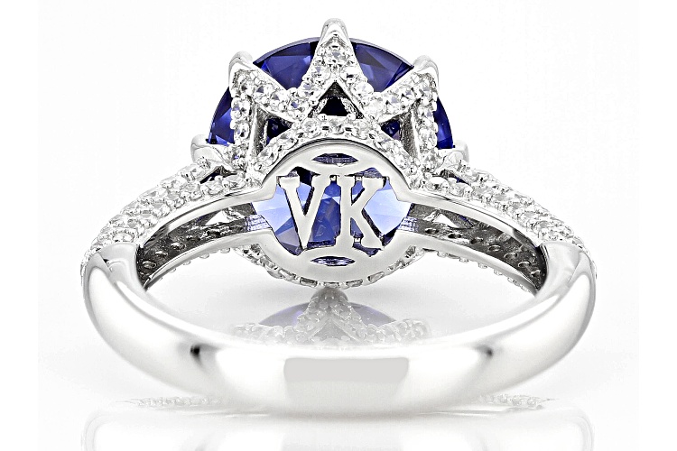 Vanna K™ for Bella Luce® tanzanite and white diamond simulants 9.14ctw round, platineve® ring. Measures approximately 0.81" L x 0.50" W and is not sizable. Each Vanna K™ design has a signature label that features a lab created sapphire.