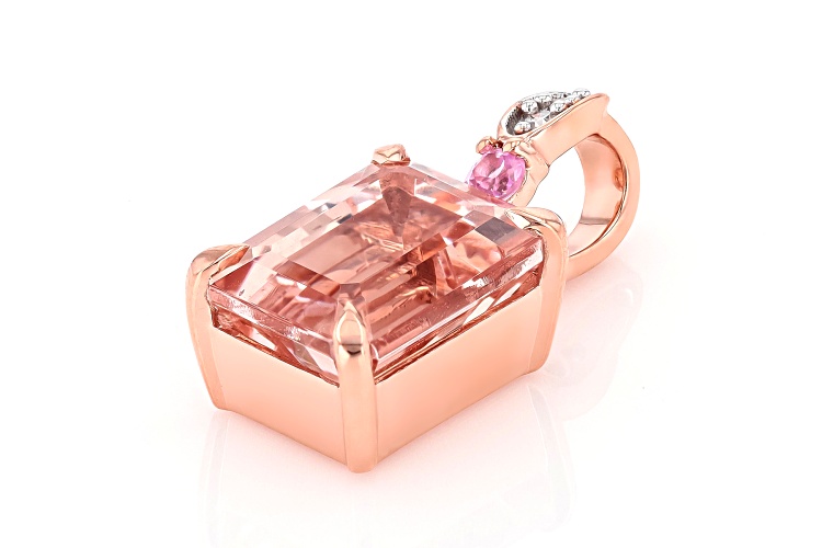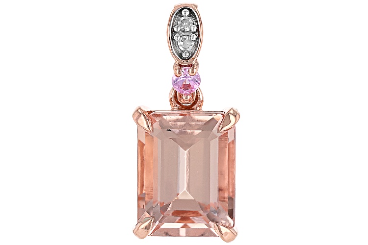 Pre-Owned 2.14ct Rectangular Octagonal Cor De Rosa™ Morganite With 0.04ct Round Pink Sapphire And 0.01ctw Round White Diamond 10k Rose Gold Pendant. Measures Approximately 0.72"L x 0.33"W. This product may be a customer return, vendor sample, or on-air display and is not in its originally manufactured condition. It may not be new. In some instances, these items are repackaged by JTV.