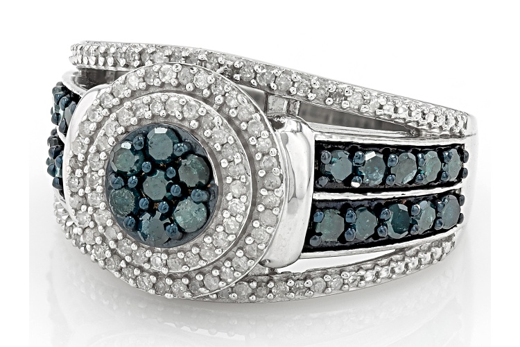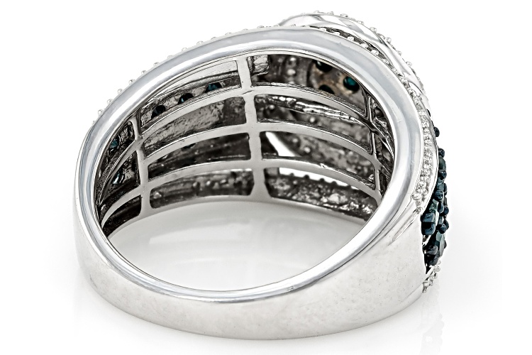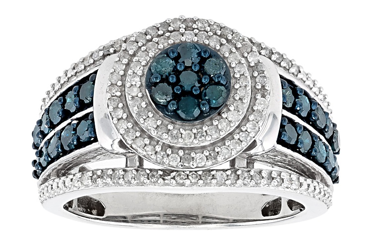 • 0.95ctw Round Blue Velvet Diamonds™ And White Diamond Rhodium Over Sterling Silver Cluster Ring - Size 8