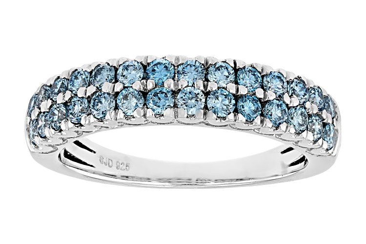 Prazana® Lab-Grown Diamonds 0.85ctw round blue lab-grown diamond, rhodium over sterling silver band ring. Measures approximately 7/8"L x 1/8"W and is not sizeable. SI clarity minimum.