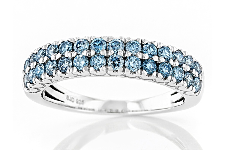 • Prazana® Lab-Grown Diamonds 0.85ctw Blue Diamond Rhodium Over Sterling Silver Ring, SI - Size 6