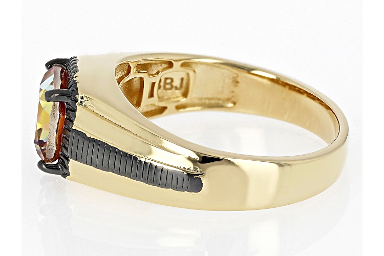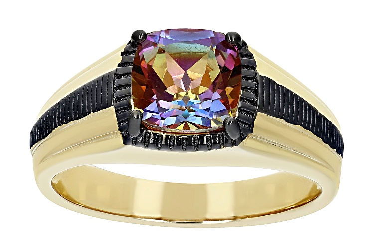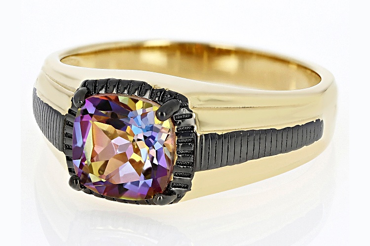 • 2.55ct Square Cushion Northern Lights™ Quartz 18k Yellow Gold Over Silver Two-Tone Men's Ring - Size 11