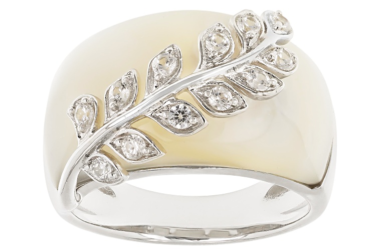 White South Sea Mother-Of-Pearl With 0.34ctw White Zircon Rhodium Over Sterling Silver Ring. Measures approximately 13/16" L x 7/16" W and is not sizeable. Colors, shapes, and sizes may vary. Accent stones primarily zircon.