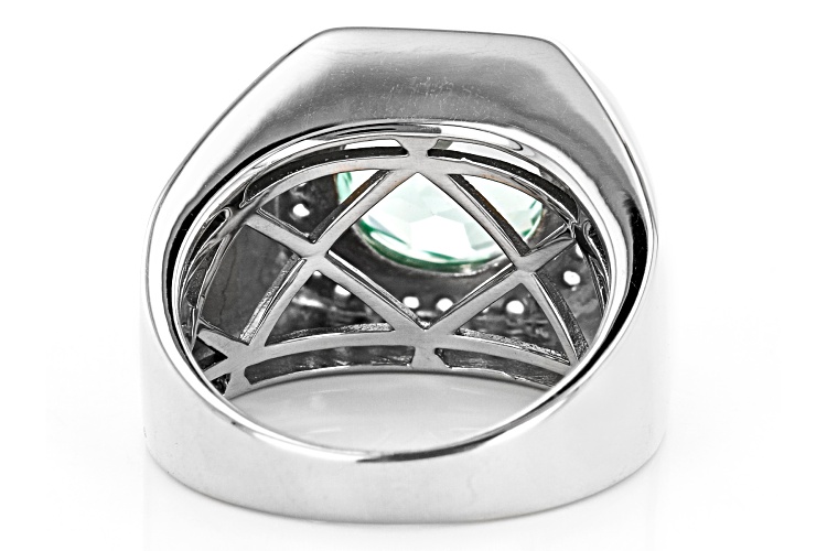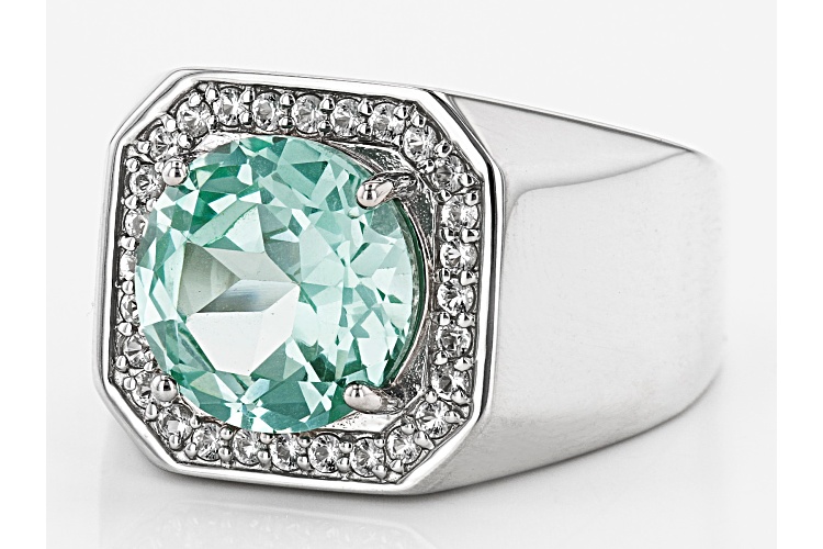 5.18ct Round Lab Created Green Spinel & .45ctw White Topaz Rhodium Over Sterling Silver Mens Ring - Size 9