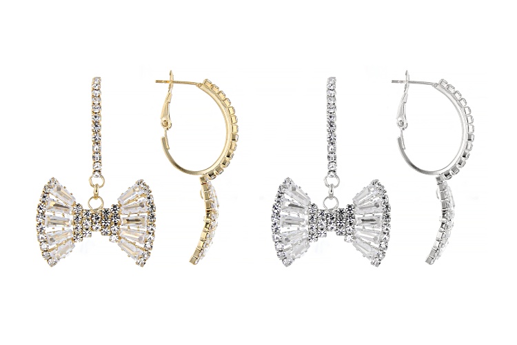 Off Park® Collection, Bella Luce® & White Crystal Gold & Silver Tone Set of 2 Bow Earrings. Measures Approximately 1.73"L x 1.08"W. Omega Backings.