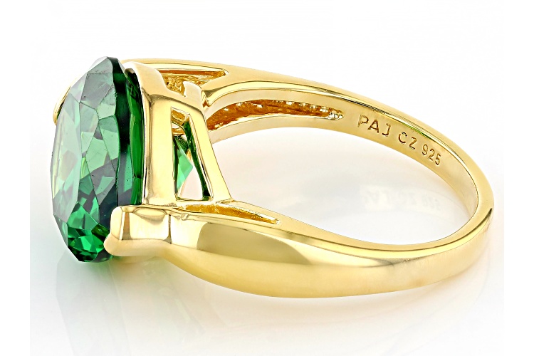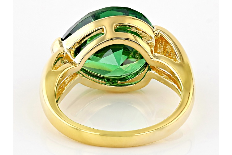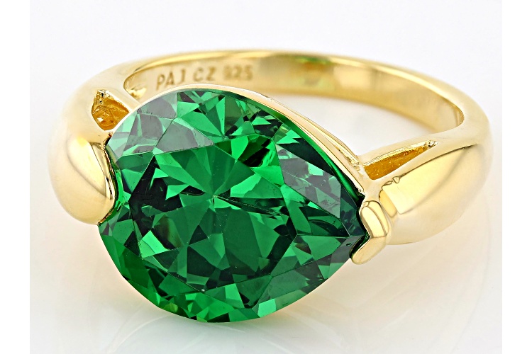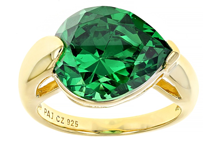 Bella Luce® emerald simulant 7.65ctw pear, Eterno™ 18k yellow gold over sterling silver ring. Measures approximately 0.88" L x 0.44" W and is not sizable.