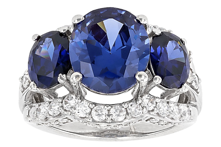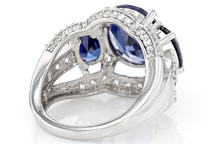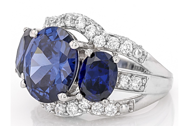 Bella Luce® Esotica™ tanzanite and white diamond simulants 12.30ctw oval and round, rhodium over sterling silver ring. Measures approximately 0.88" L x 0.63" W and is not sizable.