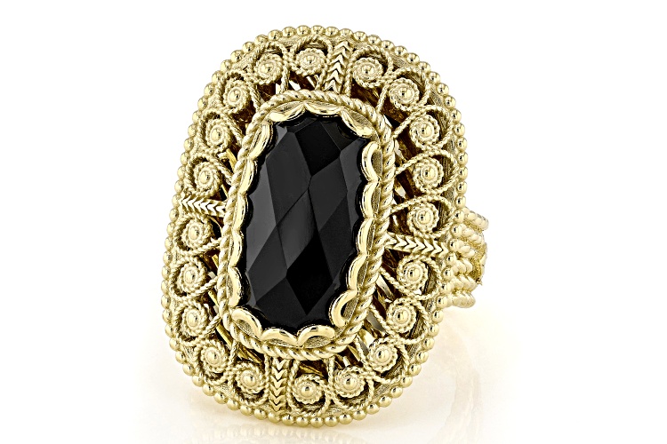 Artisan Collection of Turkey™ 15x8mm Rectangular Cushion Black Onyx 18K Gold Over Sterling Silver Solitaire Ring. Measures approximately 0.79"L x 1.05"W. Not sizeable.