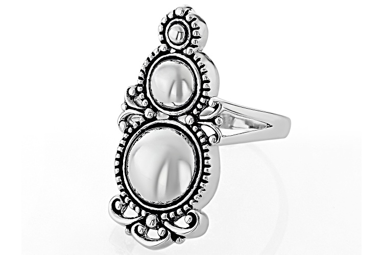Southwest Style by JTV™ Oxidized Sterling Silver Elongated Ring. Measures approximately 1.15"L x 0.57"W. Not sizeable.