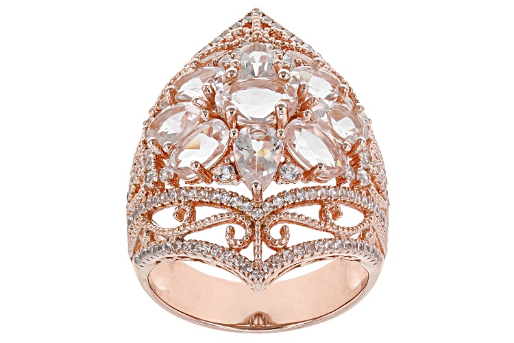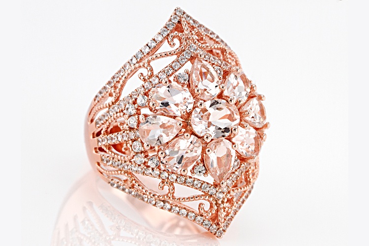 • 3.01ctw Morganite With 1.48ctw White Zircon 18k Rose Gold Over Sterling Silver Ring - Size 6