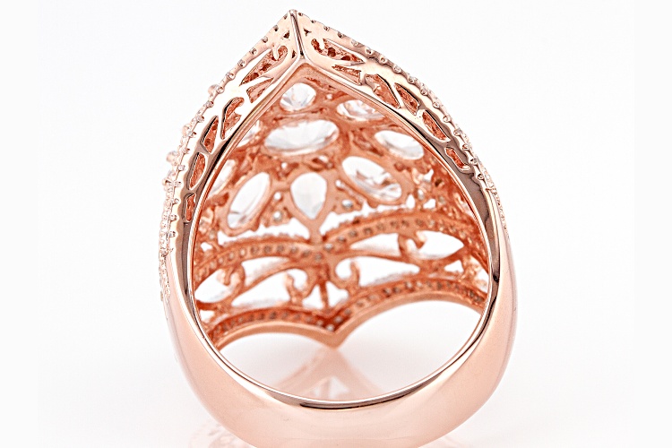 1.90ctw Oval And 1.11ctw Pear Morganite With 1.48ctw Round White Zircon 18k Rose Gold Over Sterling Silver Ring. Measures Approximately 0.85"L x 1.22"W. Not Sizeable. Accent stones primarily zircon.