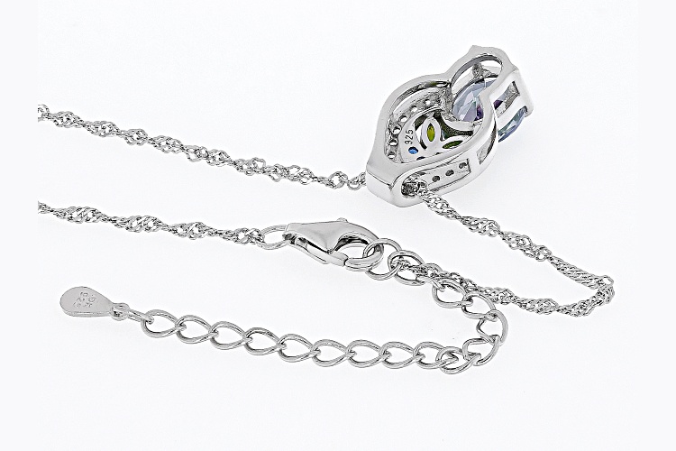 • 1.91ct Mystic Fire® Topaz, .18ctw Multi Gem And .19ctw Zircon Rhodium Over Silver Pendant Chain