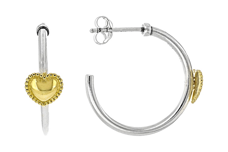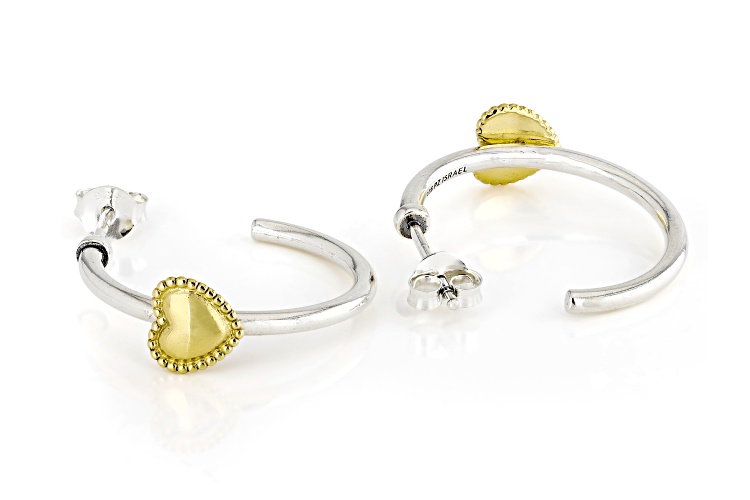 • Artisan Collection of Israel™ Two Tone Sterling Silver & 14K Gold Over Silver Heart Earrings