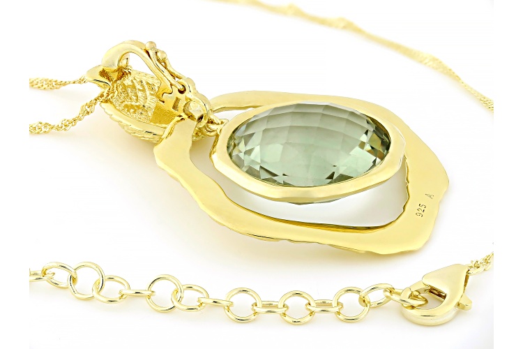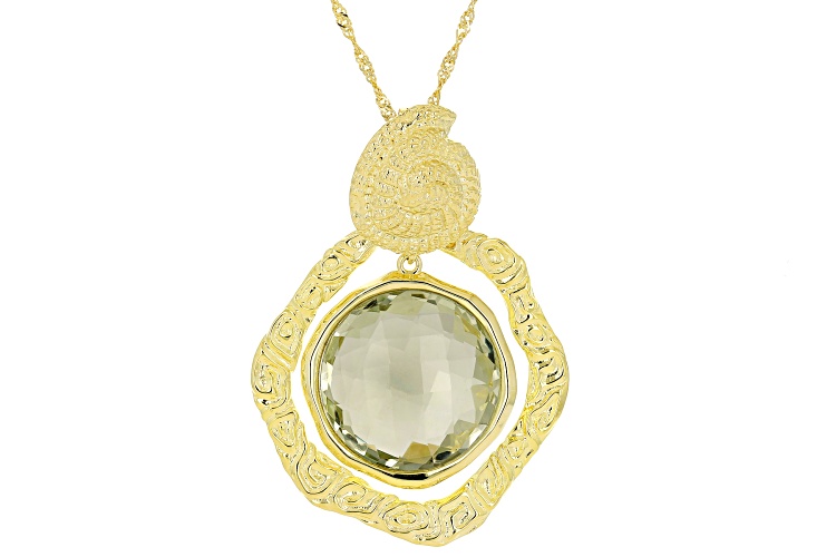 17.00ct Round Prasiolite 18k Yellow Gold Over Sterling Silver Enhancer With Chain