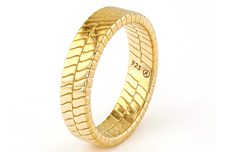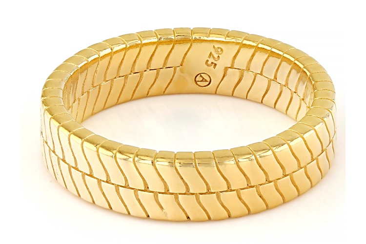18k Yellow Gold Over Sterling Silver 4.8mm Chevron Pattern Band Ring, not sizable.
