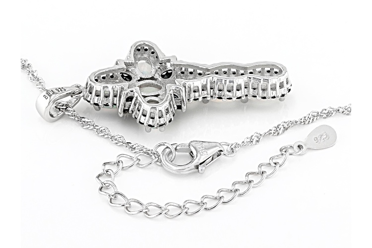 • 1.76ctw Oval Ethiopian Opal With .90ctw Black Spinel Rhodium Over Silver Cross Pendant With Chain