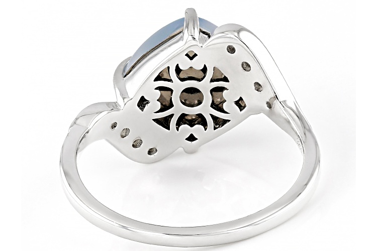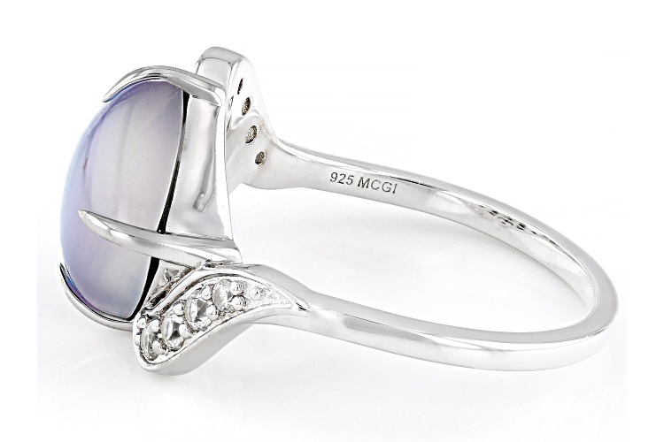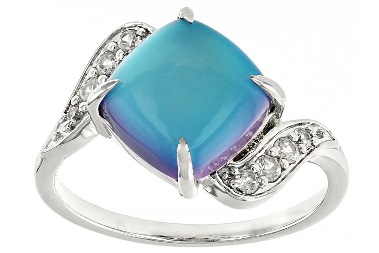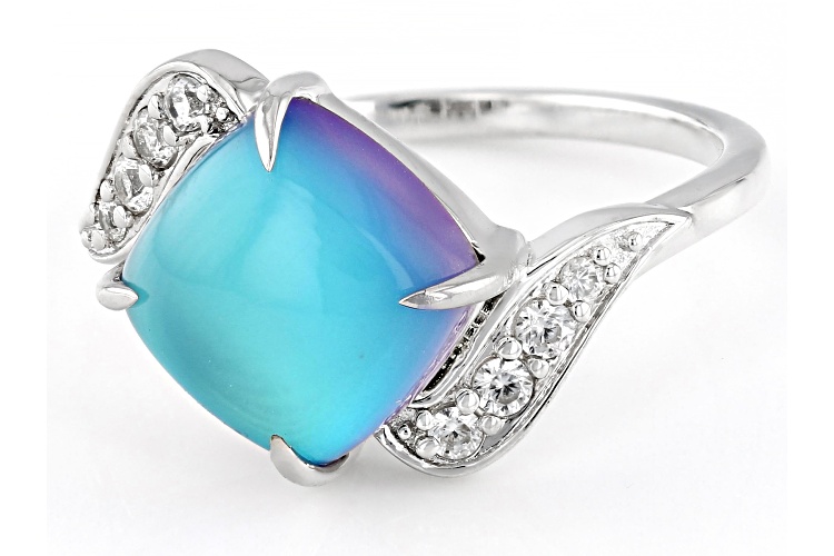 Square Cushion Blue Aurora Moonstone with 0.24ctw White Zircon Rhodium Over Sterling Silver Ring - Size 8