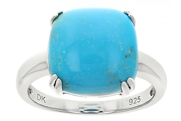 12mm Square Cushion Kingman Turquoise Rhodium Over Sterling Silver Ring. Measures Approximately 0.48"L x 0.46"W. Not Sizeable.